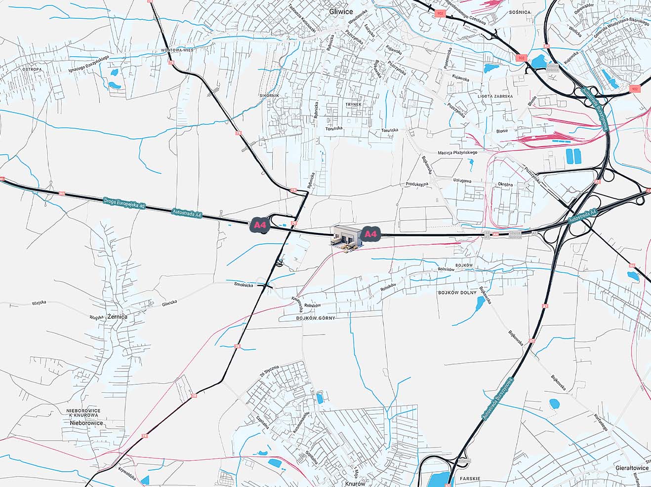 The project has an excellent location in the heart of Silesia, directly on the A4 Highway, near the exit c.a. 3 km from Sośnica junction connecting A2 and A4 Highways.